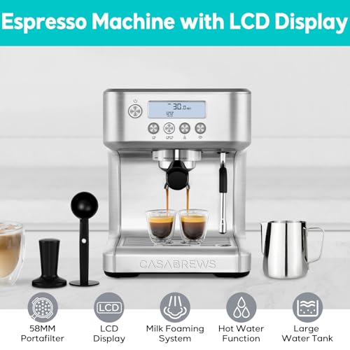 ☕【Make Your Favorite Espresso Coffee At Home】: Our coffee machine with LCD display and milk frother allows you to prepare all your favorite espresso-based coffees. You can enjoy a barista-brewed latte, cappuccino or macchiato at home. Stainless steel appearance makes it stylish and durable. This versatile machine is not only perfect for home or office use, but also makes a great wedding gift, anniversary gift, housewarming gift, christmas gift, gift for mom, gift for dad and gift for friends