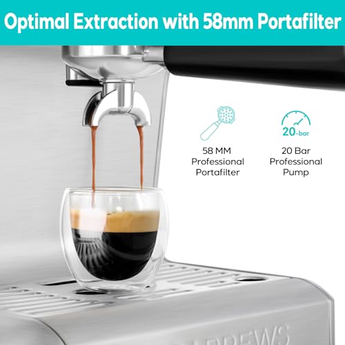☕【Professional 20-Bar Pressure System】: Equipped with 20-bar professional Italian pump and 1350W powerful motor, this semi-automatic espresso machine provides strong power to extract the oil from the coffee, meanwhile maintains the nice favor. This latte machine enables you to obtain consistent top-quality extractions, more fragrant espresso with richer crema. Now You can create barista-quality cappuccino, latte, flat white or other coffee drinks at home or in office with our cappuccino maker