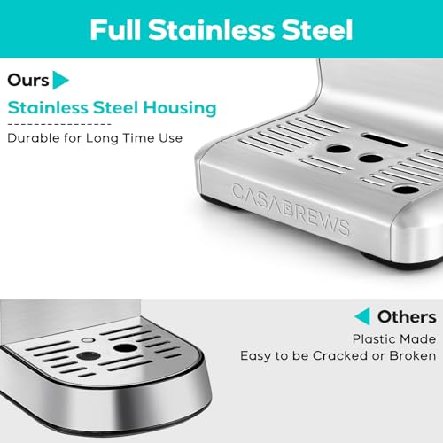 ☕【Useful Tips】: Too coarse the grind size, too little the coffee dose, or insufficiently tamping on the ground coffee before brewing can all lead to inadequate pressure for a proper brew. Also, it is very important to use fresh ground coffee. If the ground coffee has been exposed to the air for a long time, the oils in the coffee will evaporate, resulting in a low pressure too. Note: You can watch more INSTRUCTIONAL VIDEO by clicking Visit the CASABREWS Store